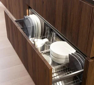 MOBILTURI aggiunge alla sua collezione il modello Onda con anta cannettata e rivestimento in PET.