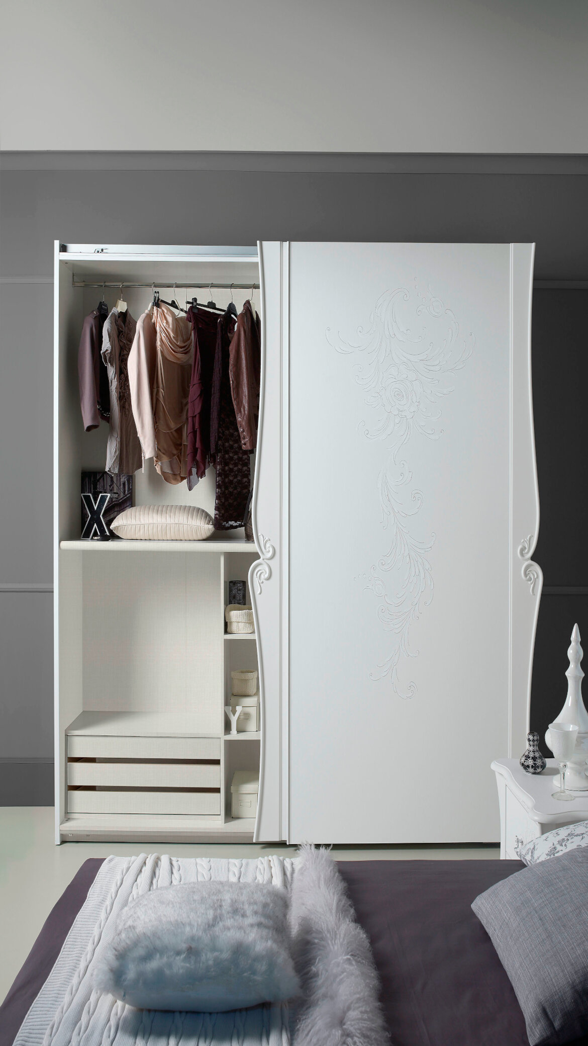 Su richiesta è possibile aggiungere la cassettiera interna all'armadio, la specchiera ed il materasso.