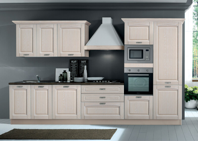 Finitura laccata a poro aperto nei colori: bianco, panna, tortora e noce.